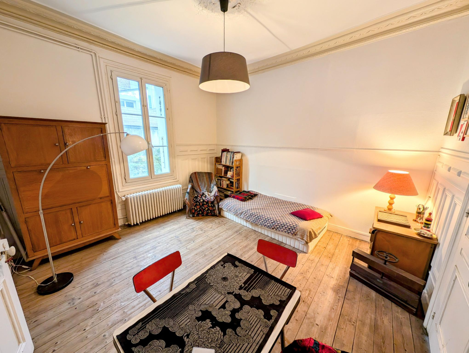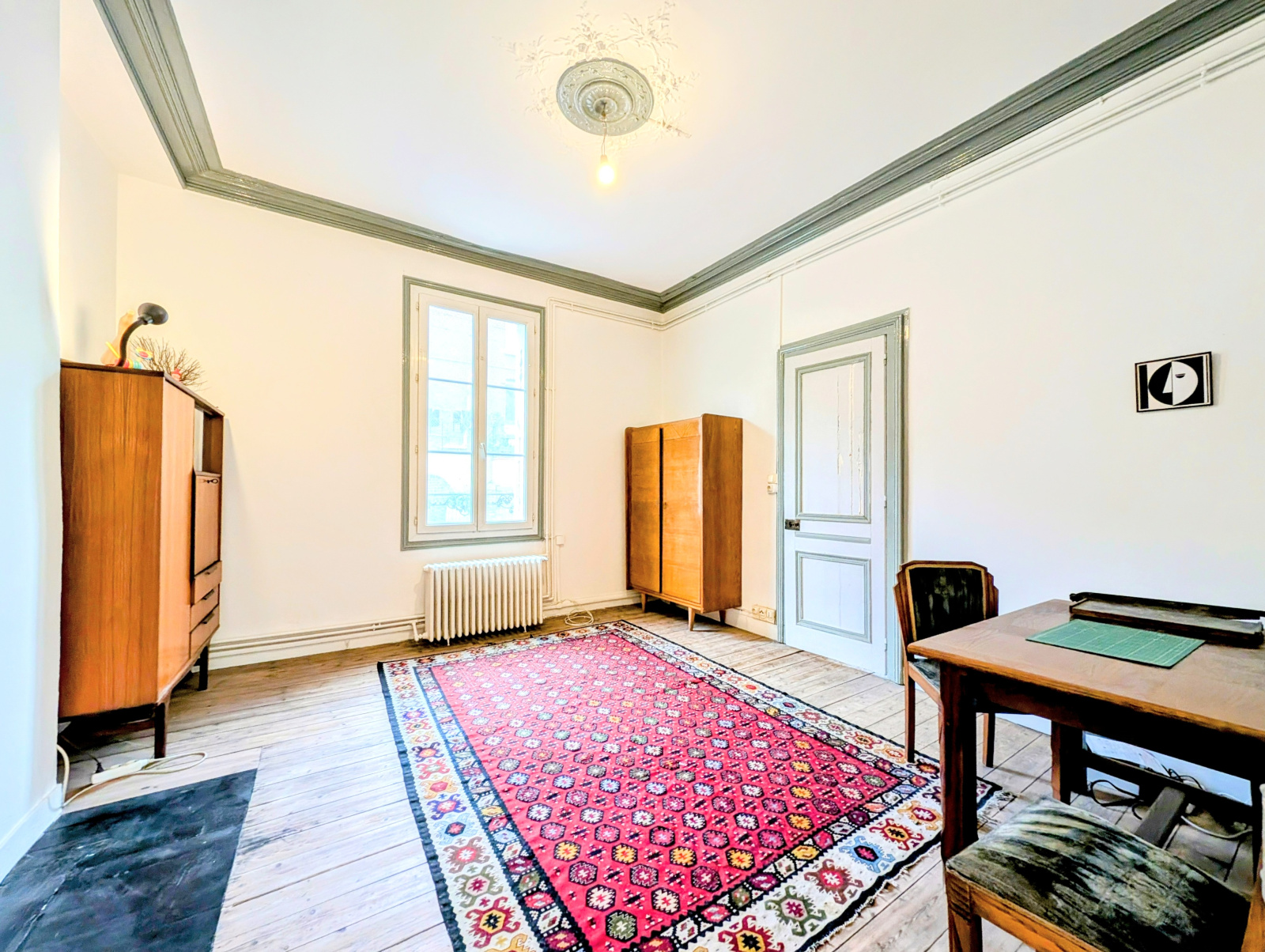 Du charme, une belle hauteur sous plafond, de jolis parquets anciens, du volume, un jardin et un garage!!